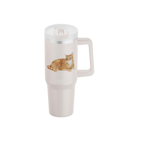 Double-wall vacuum insulated Serengeti 40 ounce tumbler with handle and straw keeps your drink hot or cold for hours and take the beating of the day.