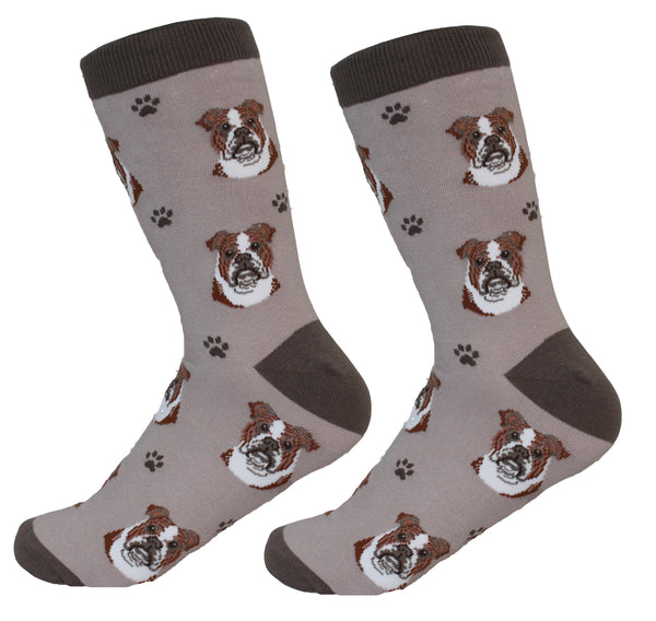 Our Bulldog socks are made from the finest quality cotton. We use 200 Needle count machines to make them while most of the companies only go up to 144 needle count. There are 20 to 24 Bulldog faces woven on each pair of socks. Best of all, these socks are super soft and comfortable and they are machine washable. If you have a Bulldog you have to have a pair of these socks. These socks also make great gifts for anyone in your family and friends.