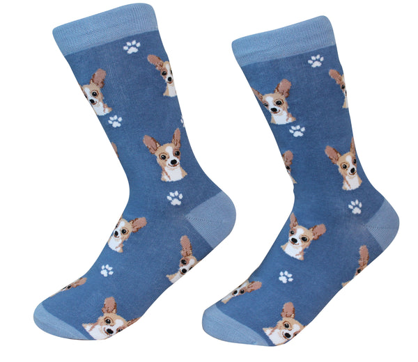 Our Chihuahua socks are made from the finest quality cotton. We use 200 Needle count machines to make them while most of the companies only go up to 144 needle count. There are 20 to 24 Chihuahua faces woven on each pair of socks. Best of all, these socks are super soft and comfortable and they are machine washable. If you have a Chihuahua you have to have a pair of these socks. These socks also make great gifts for anyone in your family and friends.