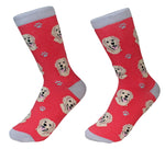 Our Golden Retriever socks are made from the finest quality cotton. We use 200 Needle count machines to make them while most of the companies only go up to 144 needle count. There are 20 to 24 Golden Retriever faces woven on each pair of socks. Best of all, these socks are super soft and comfortable and they are machine washable. If you have a Golden Retriever you have to have a pair of these socks. These socks also make great gifts for anyone in your family and friends.