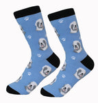 Our Old English Sheepdog socks are made from the finest quality cotton. We use 200 Needle count machines to make them while most of the companies only go up to 144 needle count. There are 20 to 24 Old English Sheepdog faces woven on each pair of socks. Best of all, these socks are super soft and comfortable and they are machine washable. If you have a Old English Sheepdog you have to have a pair of these socks. These socks also make great gifts for anyone in your family and friends.