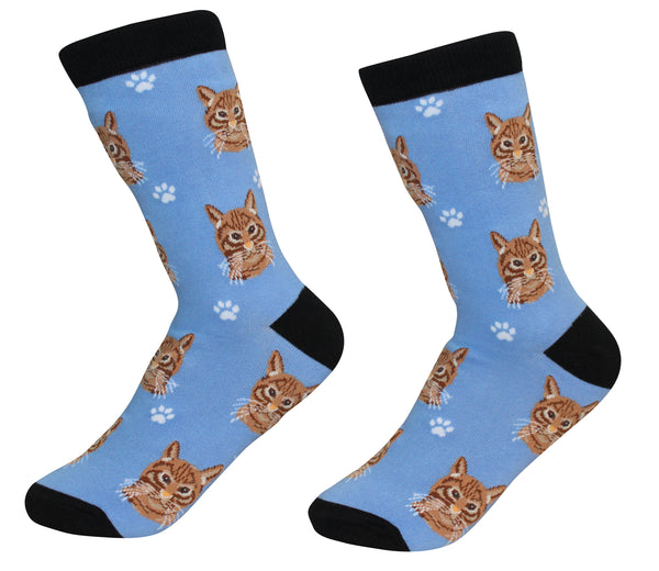 Our Orange Tabby socks are made from the finest quality cotton. We use 200 Needle count machines to make them while most of the companies only go up to 144 needle count. There are 20 to 24 Orange Tabby faces woven on each pair of socks. Best of all, these socks are super soft and comfortable and they are machine washable. If you have a Orange Tabby you have to have a pair of these socks. These socks also make great gifts for anyone in your family and friends.