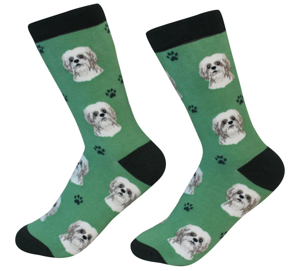 Our Shih Tzu socks are made from the finest quality cotton. We use 200 Needle count machines to make them while most of the companies only go up to 144 needle count. There are 20 to 24 Shih Tzu faces woven on each pair of socks. Best of all, these socks are super soft and comfortable and they are machine washable. If you have a Shih Tzu you have to have a pair of these socks. These socks also make great gifts for anyone in your family and friends.